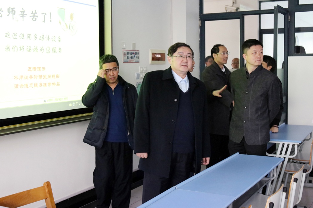 新学期即将开始,为确保各项工作正常有序,2月16日,校长蒋昌俊、副校长陈革带领学校相关职能部门负责同志,察看开学各项准备工作。