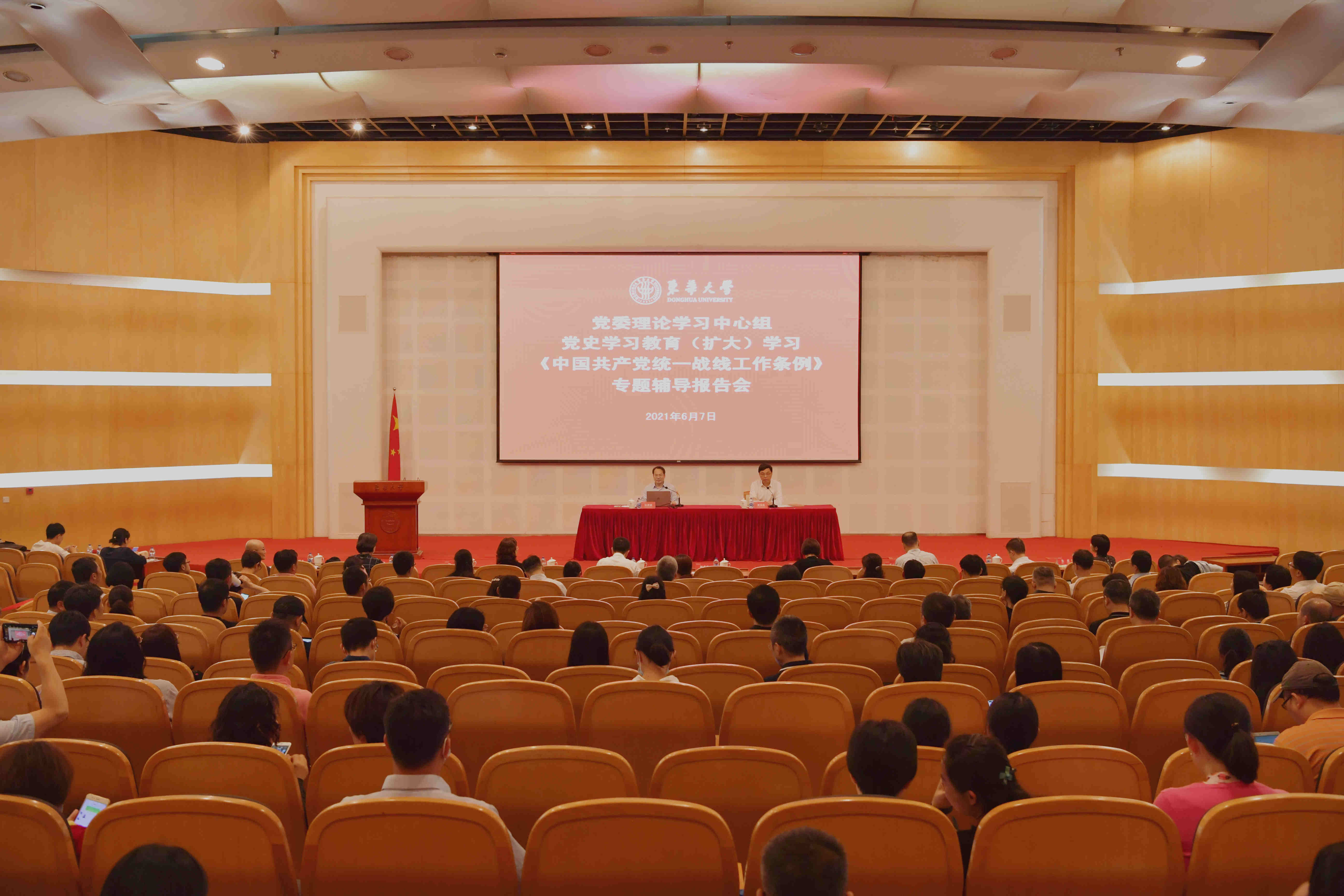 6月7日,校党委理论学习中心组在松江校区举行党史学习教育(扩大)学习报告会,邀请上海市委统战部副部长房剑森作《中国共产党统一战线工作条例》(以下简称“条例”)专题辅导报告。党委书记刘承功,校长俞建勇,党委副书记刘淑慧、崔运花、王云骏,副校长邱高、陈革、李炜,党委常委朱英、任晓杰参加学习。刘承功主持学习报告会。