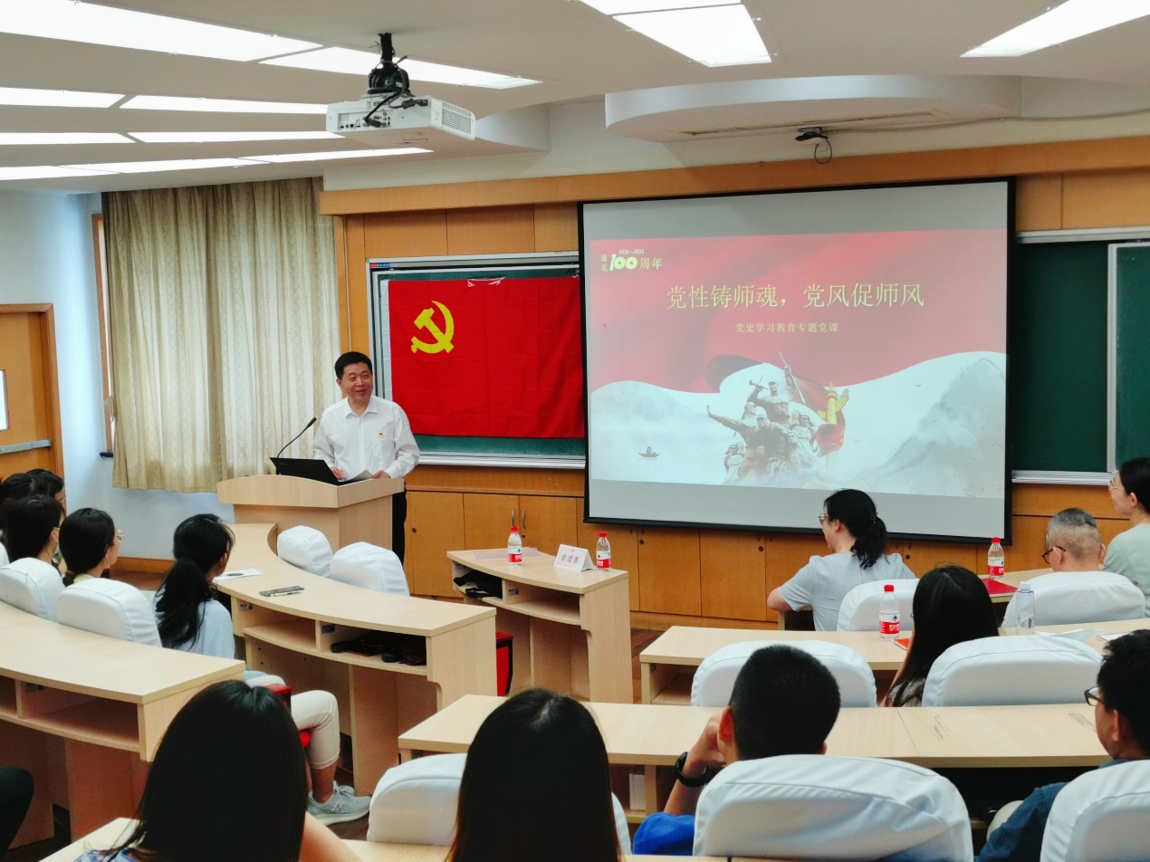 6月8日,校长、党委副书记俞建勇来到管理学院,以“党性铸师魂,党风促师风”为题,面向学院师生讲授党史学习教育专题党课。学院班子成员、支部书记、系(室、中心)主任、大数据与算法研究中心党支部、会计学领航团队党支部全体党员、党员代表参加了此次党课学习。