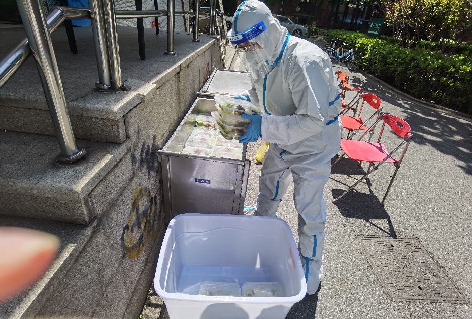 信访办的黄洪涛老师刚刚完成送饭任务,又马上投入到本职工作中了。“开始还担心自己是新手‘外卖员’,松江校区这么面积大,这么多饭怎么送,到岗后看到学校预案充分,大家迅速响应、线上集结、线下分组行动,一切都在有序、快速推进,心里就踏实许多了。”