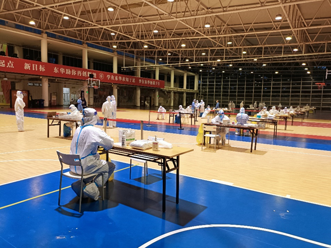 “东华园里,除了为核酸检测服务的志愿者,很多老师还投身到送餐志愿者、宿舍楼外志愿者、宿舍驻楼志愿者、食堂秩序维护志愿者、校园秩序维护志愿者、教师网格楼内志愿者、物资搬运志愿者、学生返乡离校发车志愿者等十大类不同的志愿者岗位。”学校教师志愿者工作的负责人之一、党委组织部张晓冬介绍说。